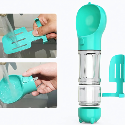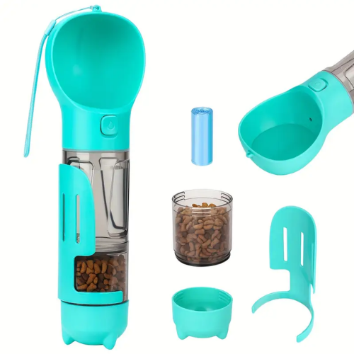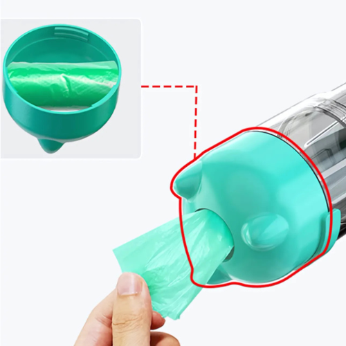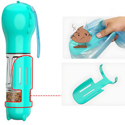 Tout ce dont vous avez besoin en balade — eau, croquettes, sacs et pelle dans un seul produit.